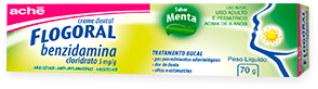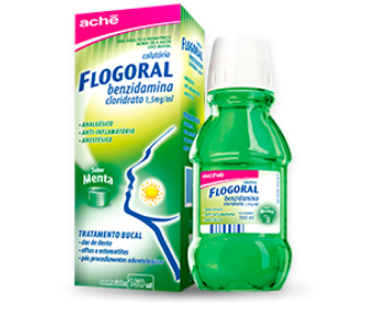 FLOGORAL - COLUTÓRIO, CREME DENTAL E PASTILHA (CLORIDRATO DE BENZIDAMINA) INDICAÇÕES: TRATAMENTO DE PROCESSOS INFLAMATÓRIOS DA MUCOSA ORAL E OROFARINGE, COMO AFTAS, ESTOMATITES, MUCOSITES, OUTRAS MANIFESTAÇÕES INFLAMATÓRIAS DA MUCOSA BUCAL E LÍNGUA, DOR DE DENTE E GENGIVA, DOR E INFLAMAÇÃO DA GARGANTA, SINTOMAS LOCAIS DO RESFRIADO COMUM E GRIPE SOBRE A OROFARINGE, E DOR PÓS-TRAUMÁTICA. MS - 1.0573.0313. SE PERSISTIREM OS SINTOMAS, O MÉDICO DEVERÁ SER CONSULTADO. FLOGORAL É UM MEDICAMENTO. SEU USO PODE TRAZER RISCOS. PROCURE O MÉDICO E O FARMACÊUTICO. LEIA A BULA. 1. BULA DO PRODUTO FLOGORAL. ACHÉ LABORATÓRIOS FARMACÊUTICOS S.A. 2. Indicado para uso adulto e pediátrico acima de 6 anos. FARMACÊUTICA RESPONSÁVEL: GABRIELA MALLMANN. ACHÉ LABORATÓRIOS FARMACÊUTICOS S.A. * TEMPO DE INÍCIO DO EFEITO ANESTÉSICO DE FLOGORAL (A PARTIR DE 5 MINUTOS) VERSUS TEMPO DE INÍCIO DE AÇÃO NA REDUÇÃO DA DOR DE PRODUTOS COM FLURBIPROFENO (A PARTIR DE 15 MINUTOS). MB 08 VPS COLUTÓRIO SAP 4081426/ MB 02 VPS CREME DENTAL SAP 4081226 /MB 09 VPS PASTILHA SAP 4279302/ MB 03 VPS COLUTORIO SPRAY SAP 4081626 09/21. JULHO/2024. CÓDIGO 7044893.